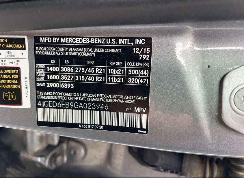 - VIN: 4JGED6EB9GA023946