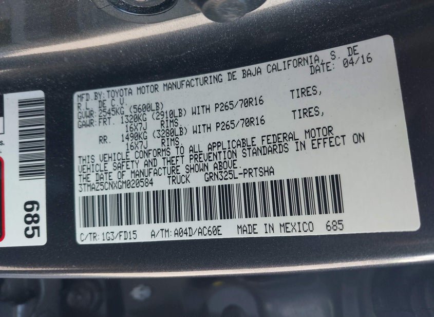 - VIN: 3TMAZ5CNXGM020584
