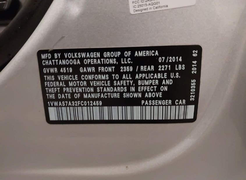 - VIN: 1VWAS7A32FC012459