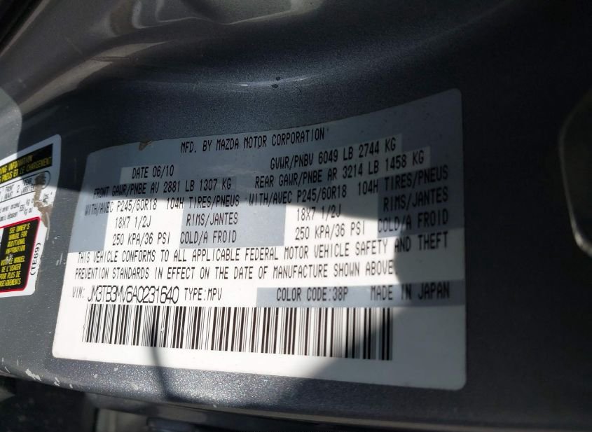 - Название лота: 2010 MAZDA CX-9 TOURING