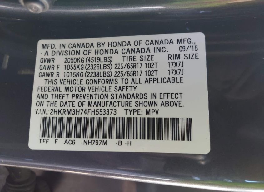 - VIN: 2HKRM3H74FH553373