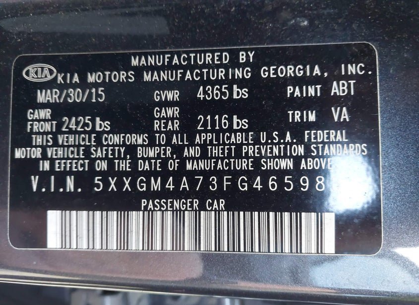 - VIN: 5XXGM4A73FG465983