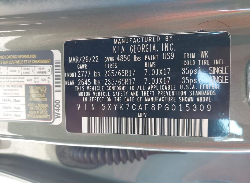 - VIN: 5XYK7CAF8PG015309