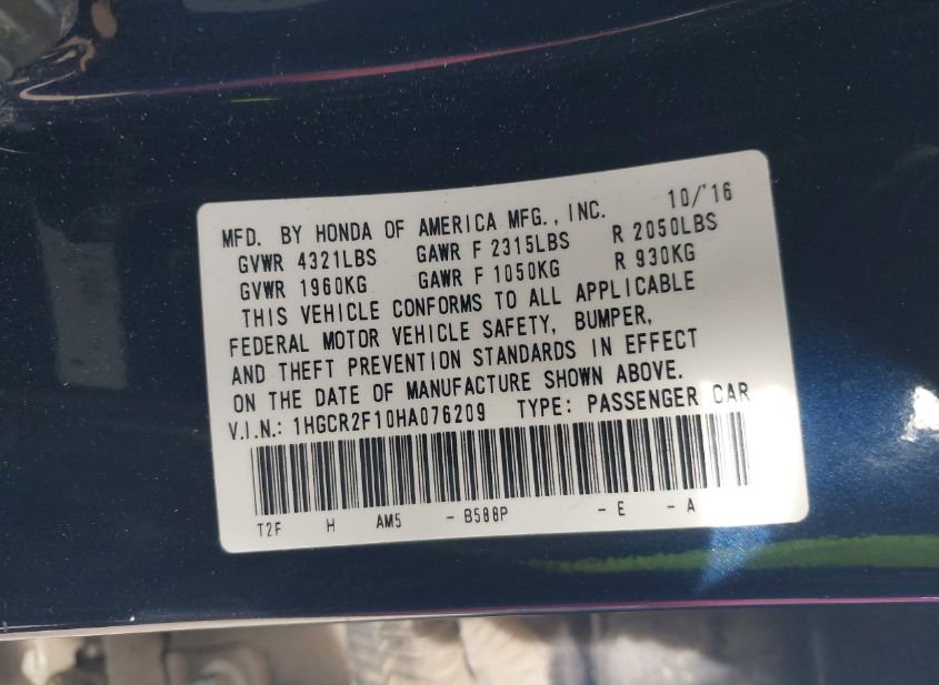 - VIN: 1HGCR2F10HA076209
