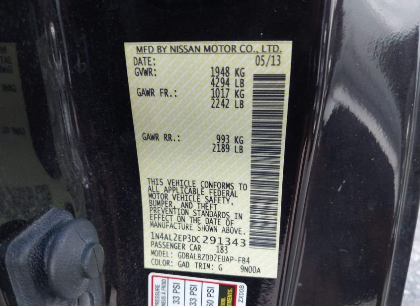 - VIN: 1N4AL2EP3DC291343