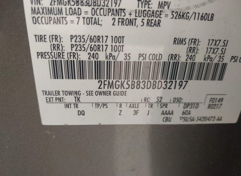 - VIN: 2FMGK5B83DBD32197