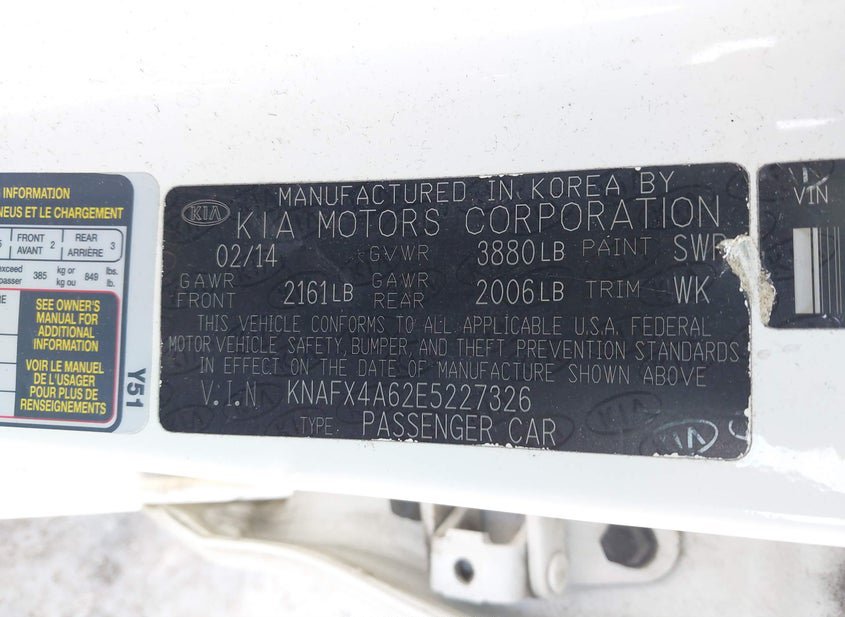 - VIN: KNAFX4A62E5227326