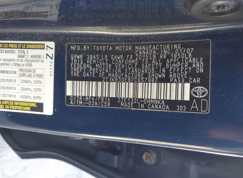 - VIN: 2T1KR30E97C657987