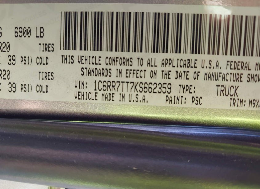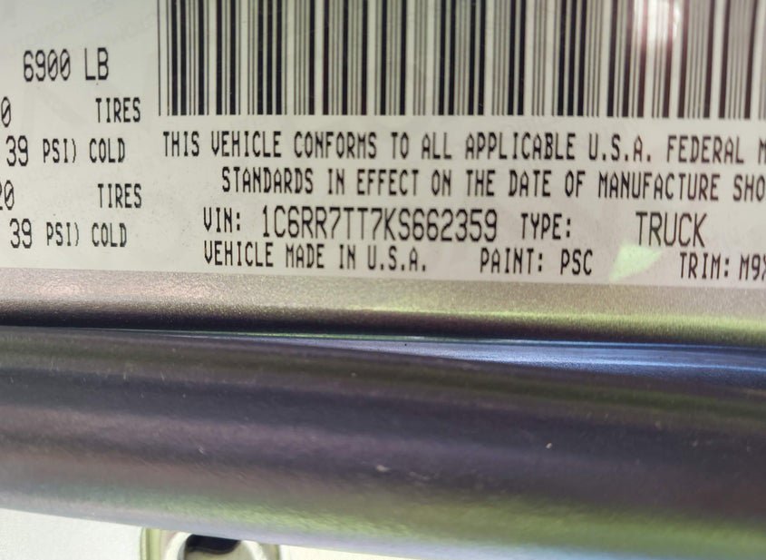 - VIN: 1C6RR7TT7KS662359