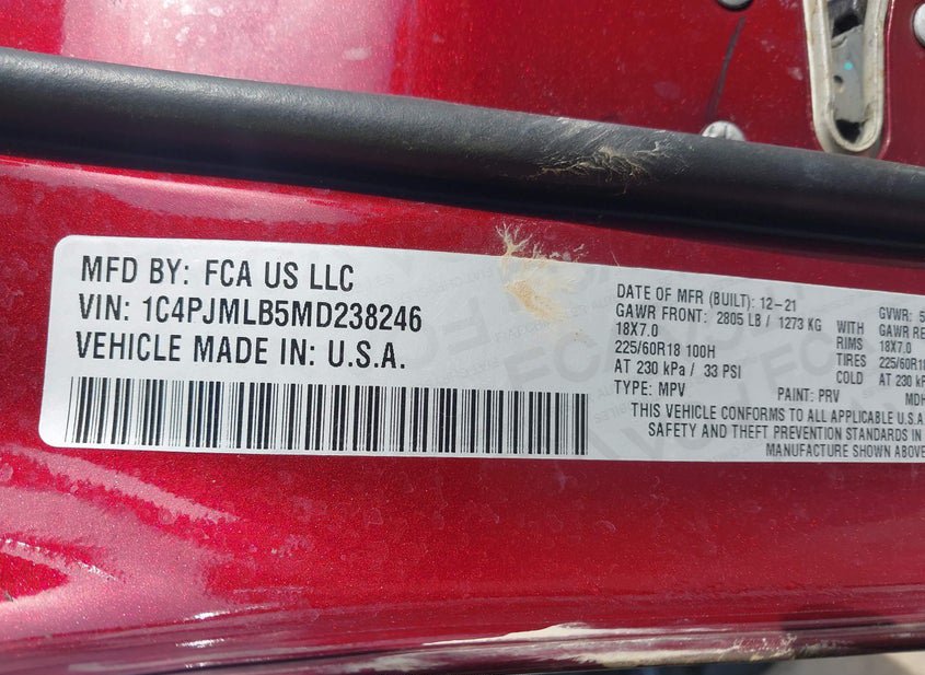 - VIN: 1C4PJMLB5MD238246