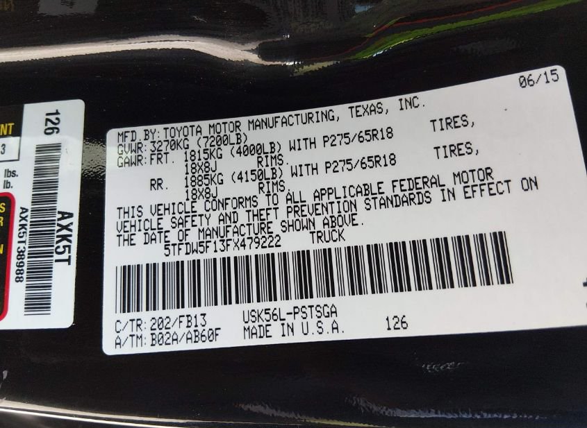 - VIN: 5TFDW5F13FX479222