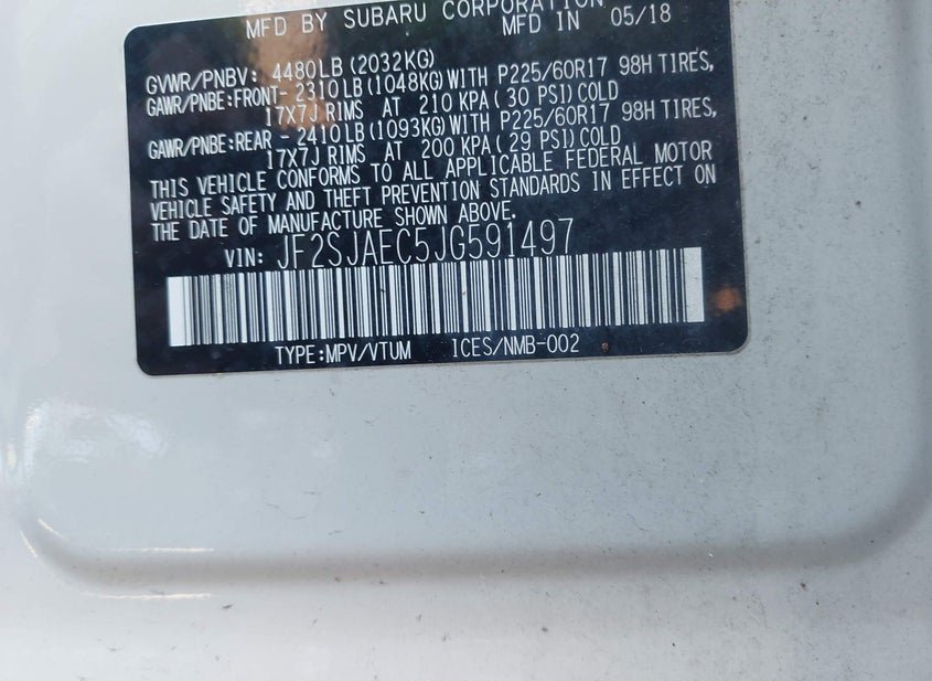 - VIN: JF2SJAEC5JG591497