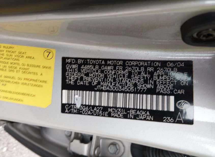 - VIN: JTHBA30G345051777