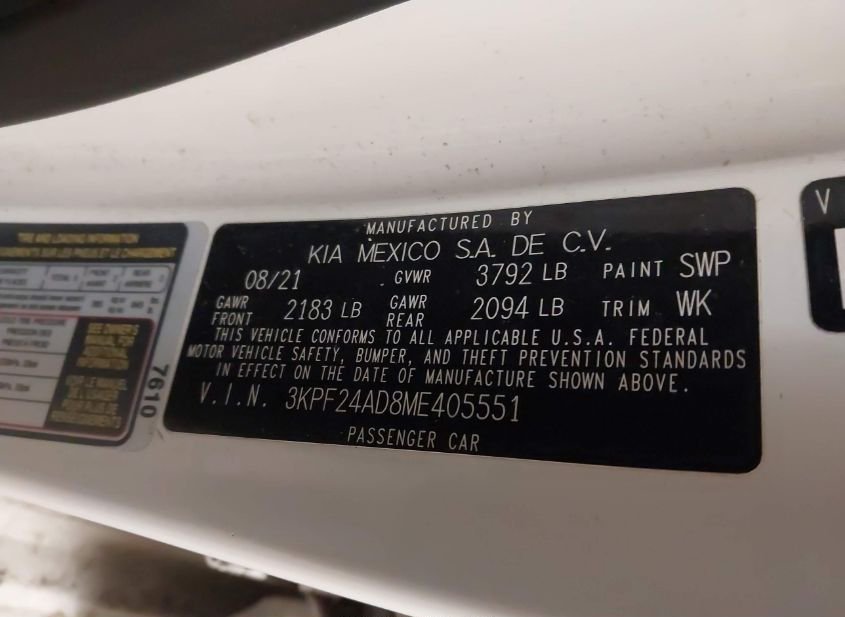 - VIN: 3KPF24AD8ME405551