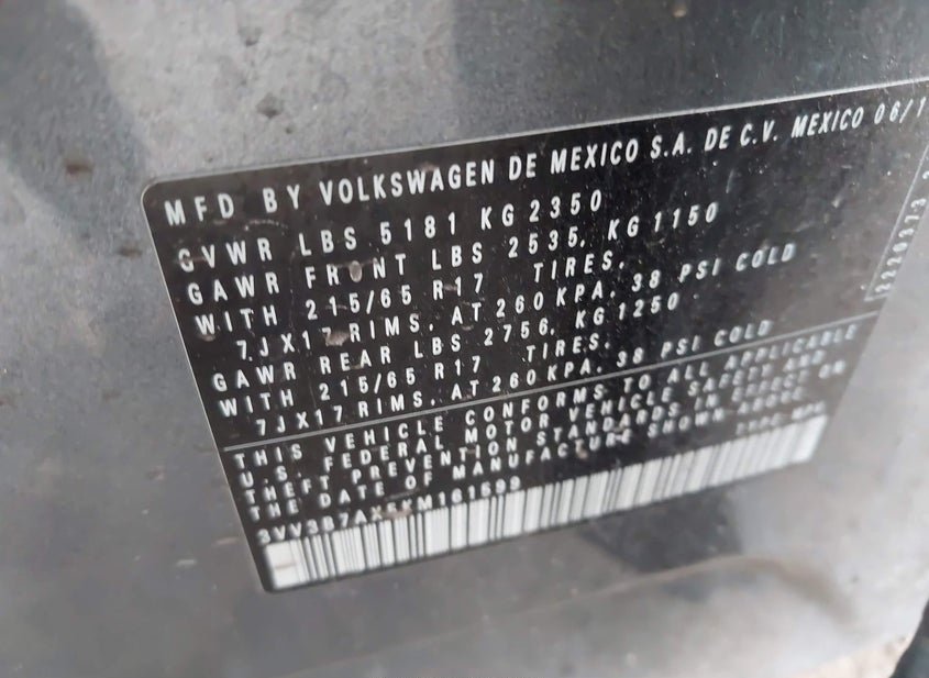 - VIN: 3VV3B7AX5KM161599