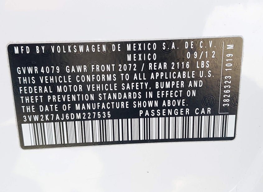 - VIN: 3VW2K7AJ6DM227535