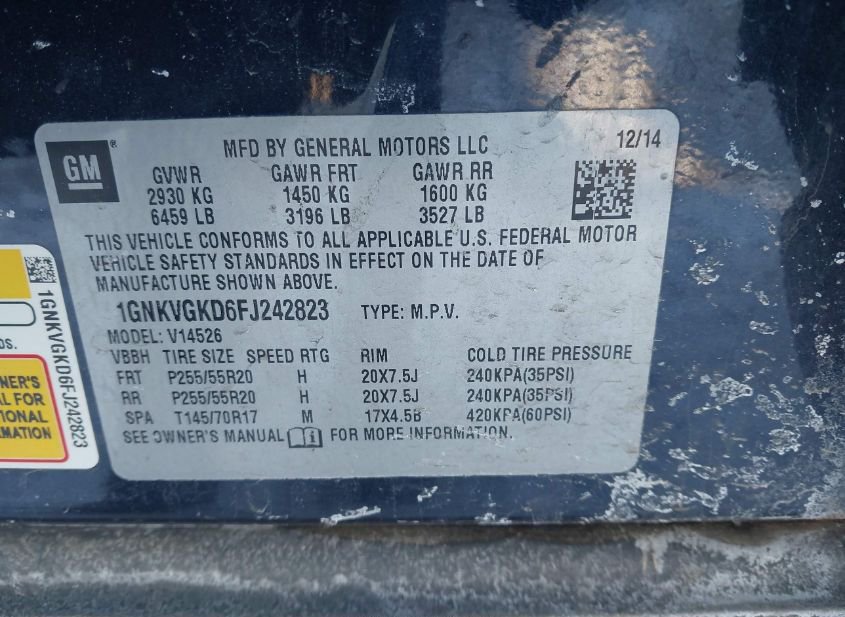- VIN: 1GNKVGKD6FJ242823