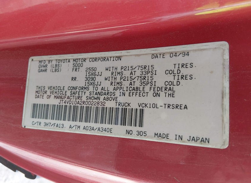 - VIN: JT4VD10A2R0022832
