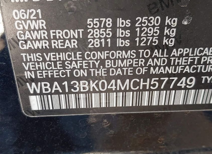 - VIN: WBA13BK04MCH57749