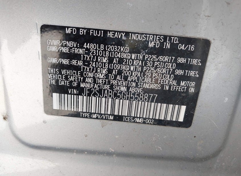 - VIN: JF2SJABC5GH558877