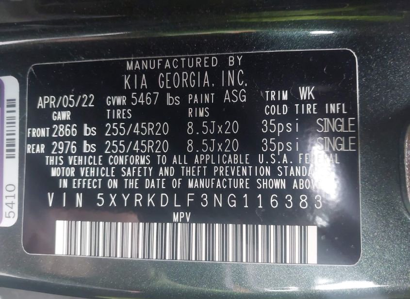 - VIN: 5XYRKDLF3NG116383