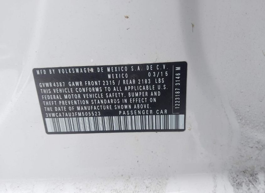 - VIN: 3VWCA7AU3FM505523