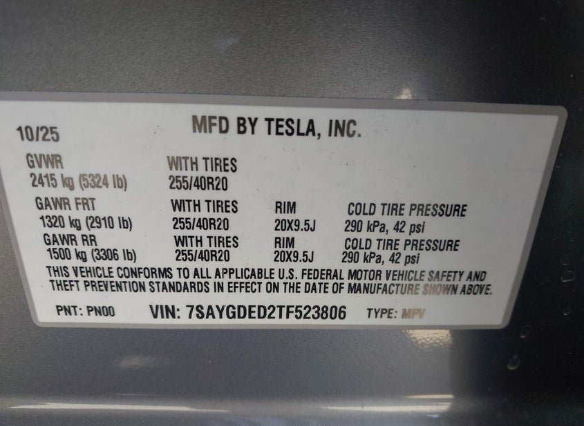 - VIN: 7SAYGDED2TF523806