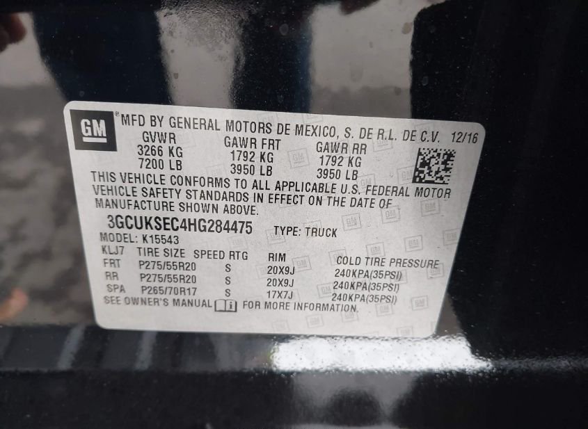 - VIN: 3GCUKSEC4HG284475