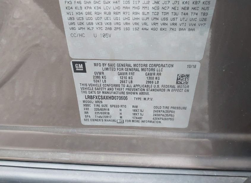 - VIN: LRBFXCSAXHD070606
