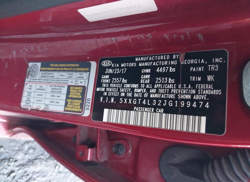 - VIN: 5XXGT4L32JG199474