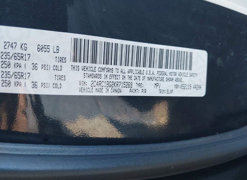 - VIN: 2C4RC1BG2KR715269