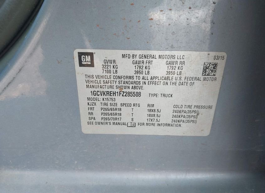 - VIN: 1GCVKREH1FZ285508