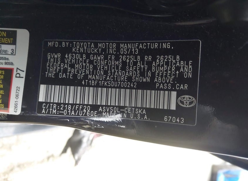 - VIN: 4T1BF1FK5DU700242