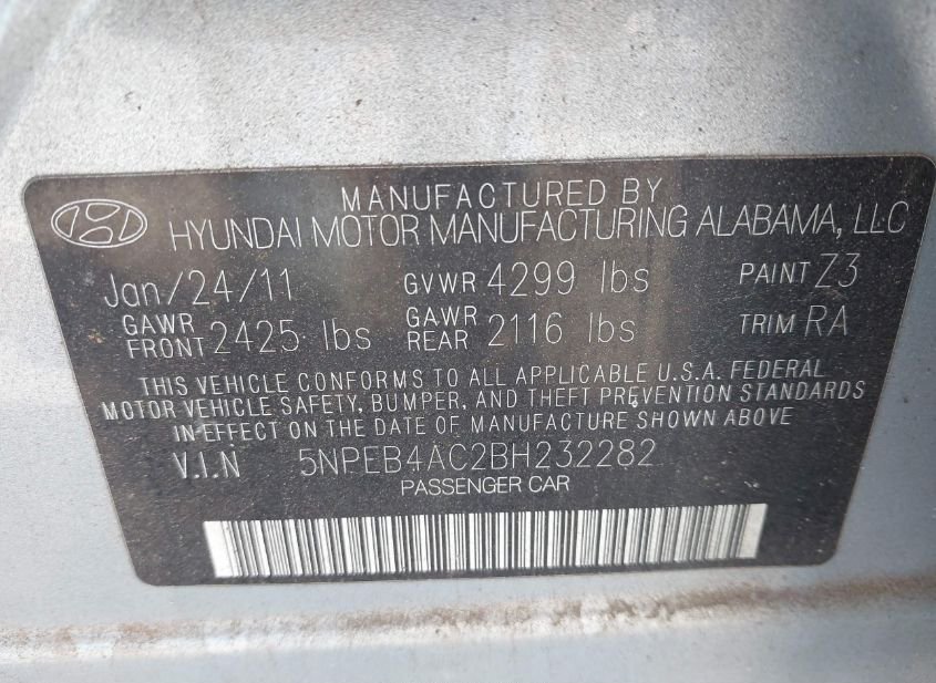 - VIN: 5NPEB4AC2BH232282