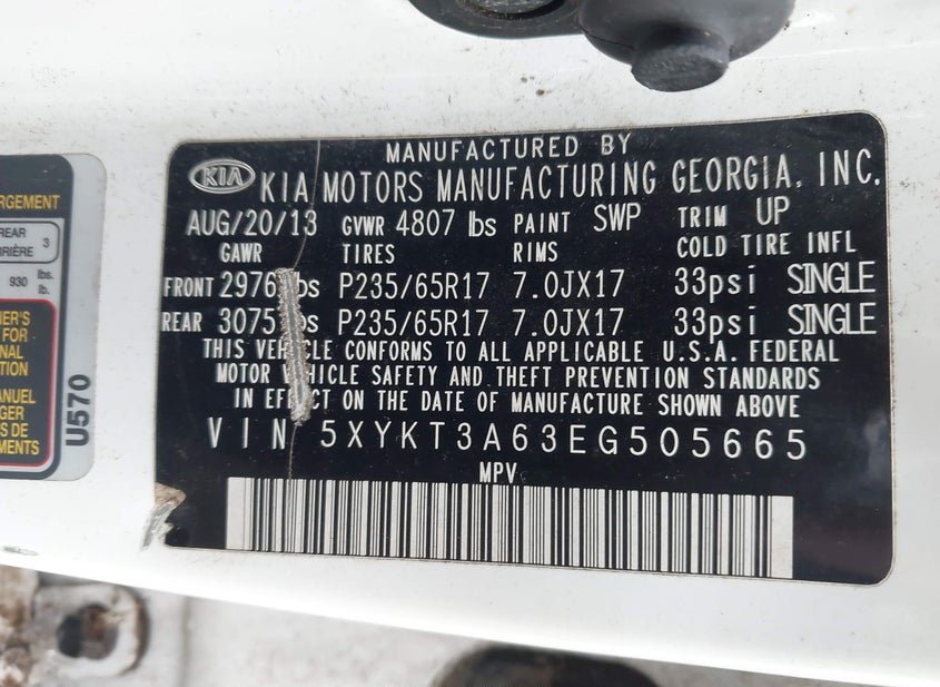 - VIN: 5XYKT3A63EG505665