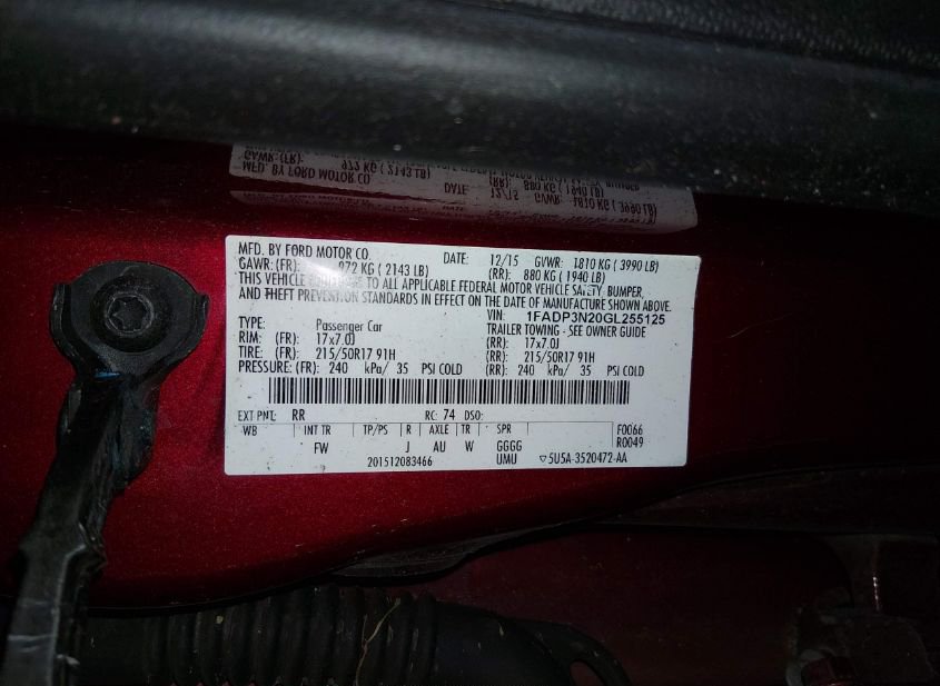 - VIN: 1FADP3N20GL255125