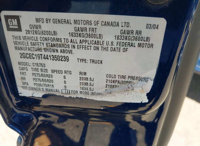 - VIN: 2GCEC19T441350239