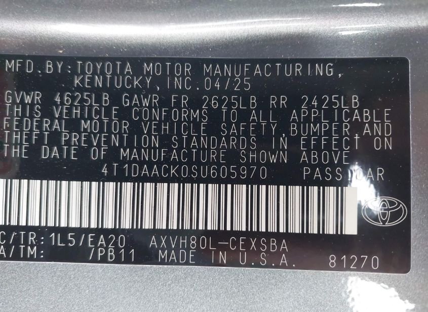 - VIN: 4T1DAACK0SU605970