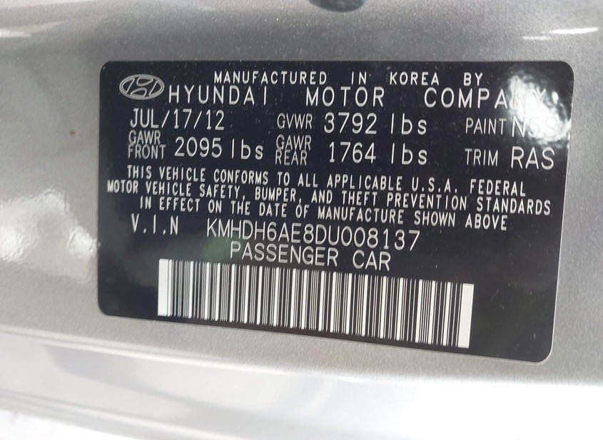 - VIN: KMHDH6AE8DU008137