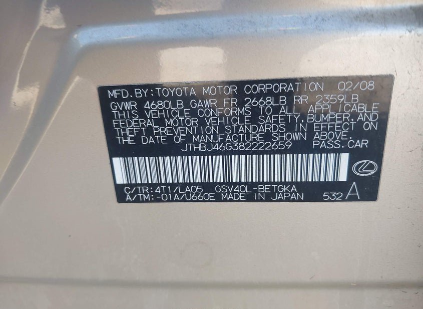 - VIN: JTHBJ46G382222659