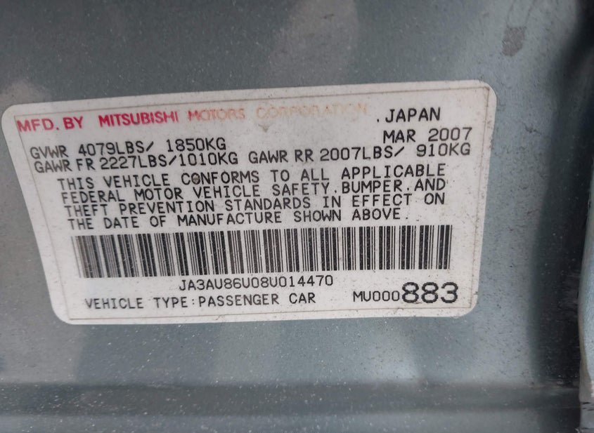 - VIN: JA3AU86U08U014470