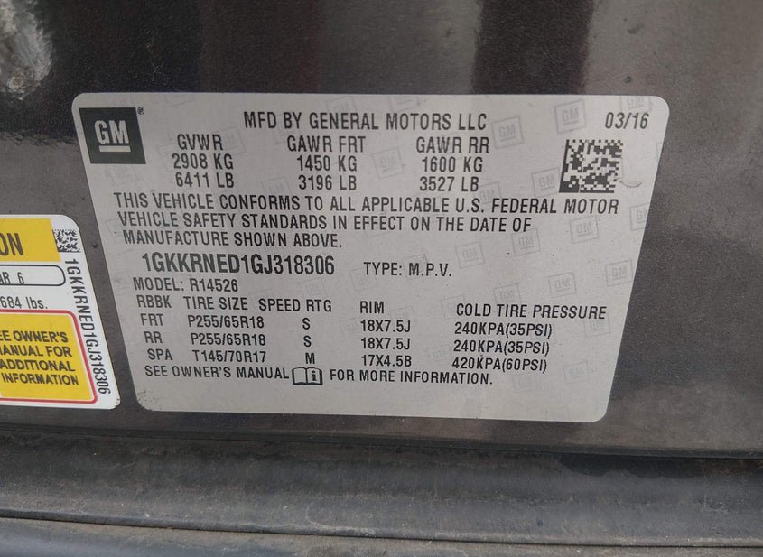 - VIN: 1GKKRNED1GJ318306