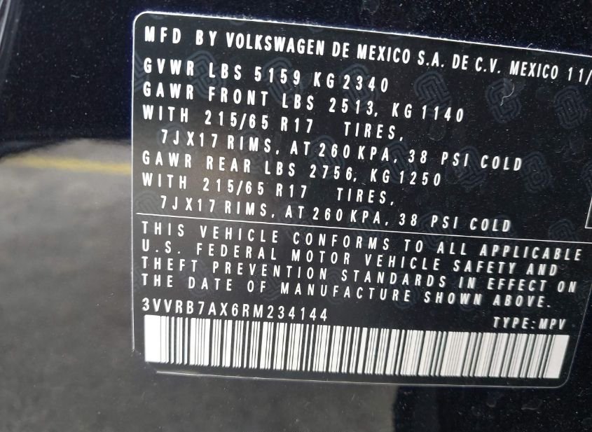 - VIN: 3VVRB7AX6RM234144