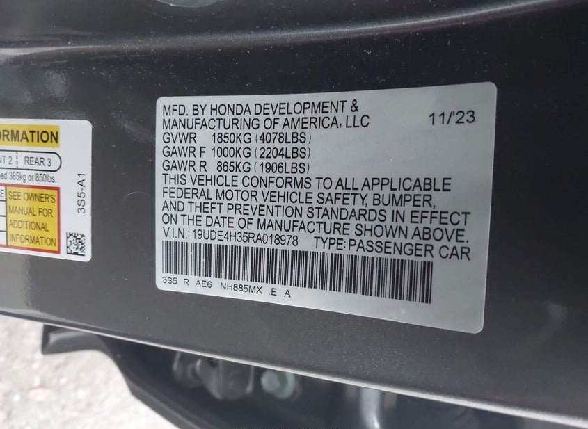 - VIN: 19UDE4H35RA018978