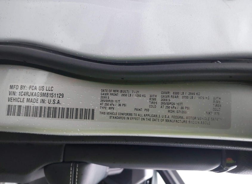 - VIN: 1C4RJKAG9M8151129