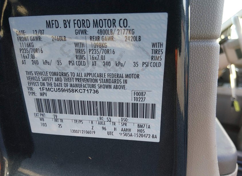 - VIN: 1FMCU59H58KC71736