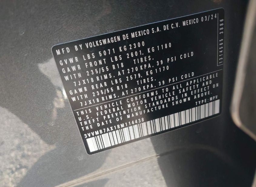- VIN: 3VVMB7AX1RM114438