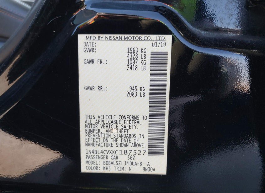- VIN: 1N4BL4CVXKC187527