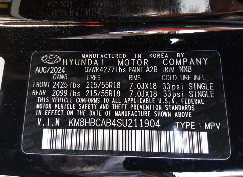 - VIN: KM8HBCAB4SU211904