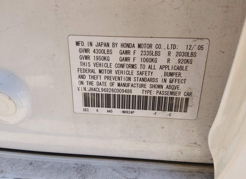 - VIN: JH4CL96826C009486